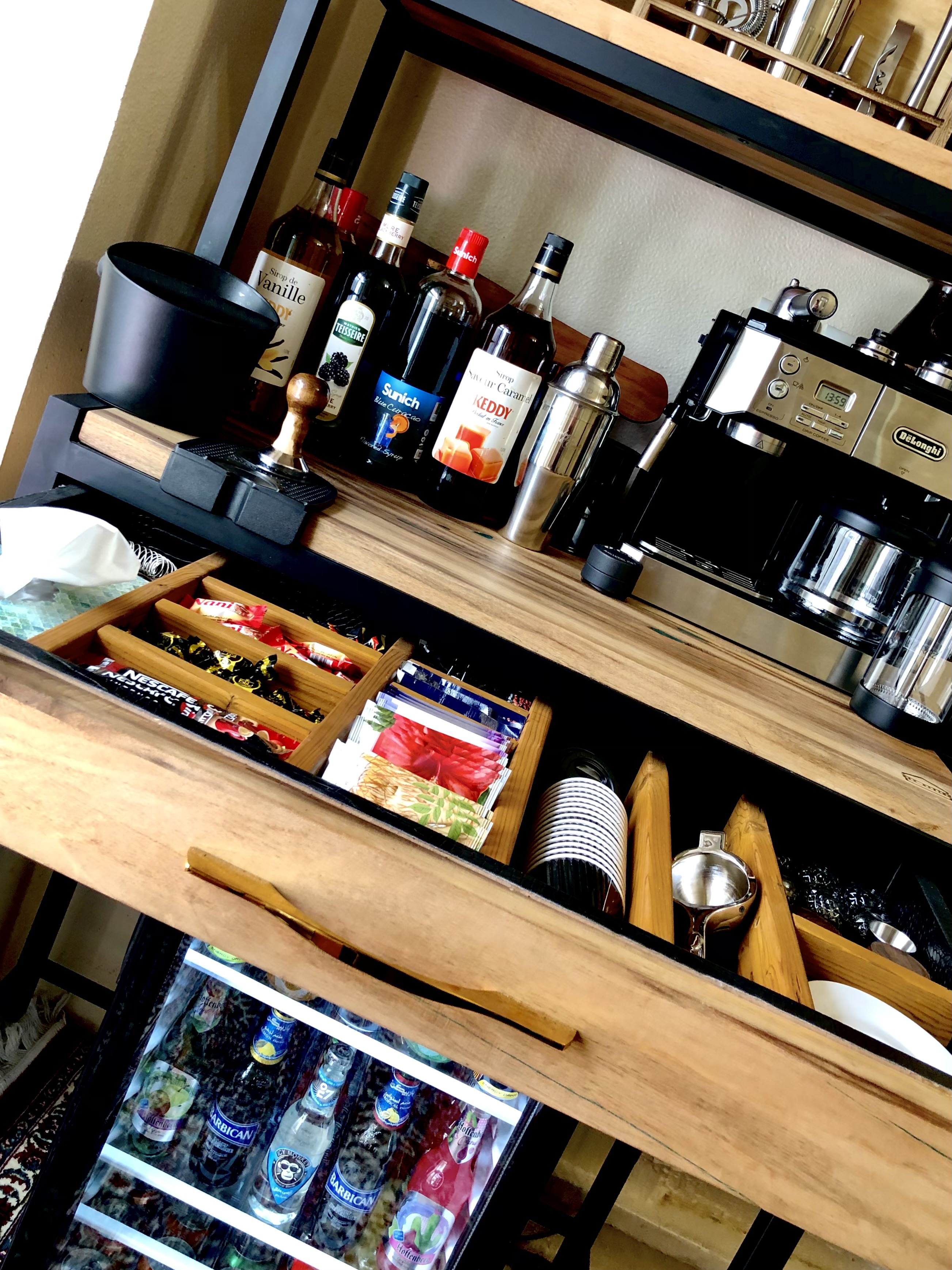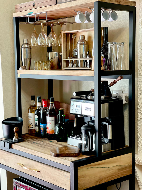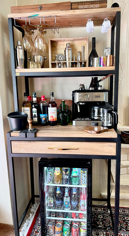 استند کافی بار چوب و فلز در طراحی منحصر به شرکت به دیزاین با استفاده از بهترین متریال